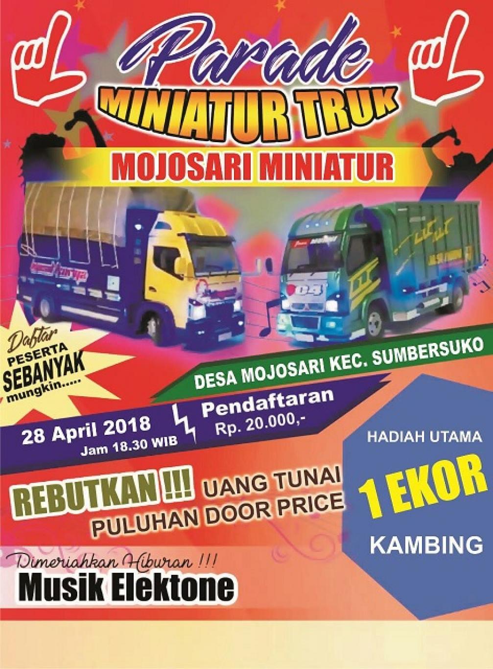 Lomba Parade Miniatur yang diselenggarakan pada hari Sabtu tanggal 28 April 2018 berlangsung sangat meriah. Para peserta tidak hanya datang dari Desa Mojosari, melainkan dari berbagai desa bahkan dari kota lain seperti Banyuwangi dan Probolinggo. Ratusan miniatur truk tersebut terlihat unik dengan hiasan lampu yang terang benderang dan ditambah lagi sound system berukuran besar dengan suara musik yang cukup memekakkan telinga seakan menambah kemeriahan perlombaan miniatur truk .Pada dasarnya Parade Miniatur ini adalah miniatur truk yang diiringi dengan musik sound system besar atau kecil. Parade dimulai pada jam 19.00 WIB dari Balai Desa Mojosari dan finish di tugu perbatasan antara Desa Mojosari dan Desa Labruk Kidul. Acara ini juga dimeriahkan oleh Music elektone. Sistem yang digunakan dalam Parade Miniatur ini adalah melalui pengundian kupon. Kupon dijual dengan harga @Rp. 20.000,-. Hadiah utama yaitu 3 ekor kambing yang masing-masing untuk juara 1, Juara 2 dan juara 3. Selain itu juga disediakan banyak hadiah doorprize dan uang tunai.